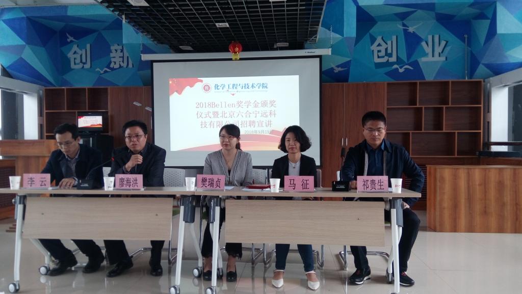 -Bellen奖学金颁奖仪式e世博办公楼科学楼七层连廊举行,北京六合科技有限公司总裁助理公樊瑞珍、人事部经理马征,院党书记廖海洪,院长祁贵生出席颁奖仪式,会议由院党委副书记李云主持。