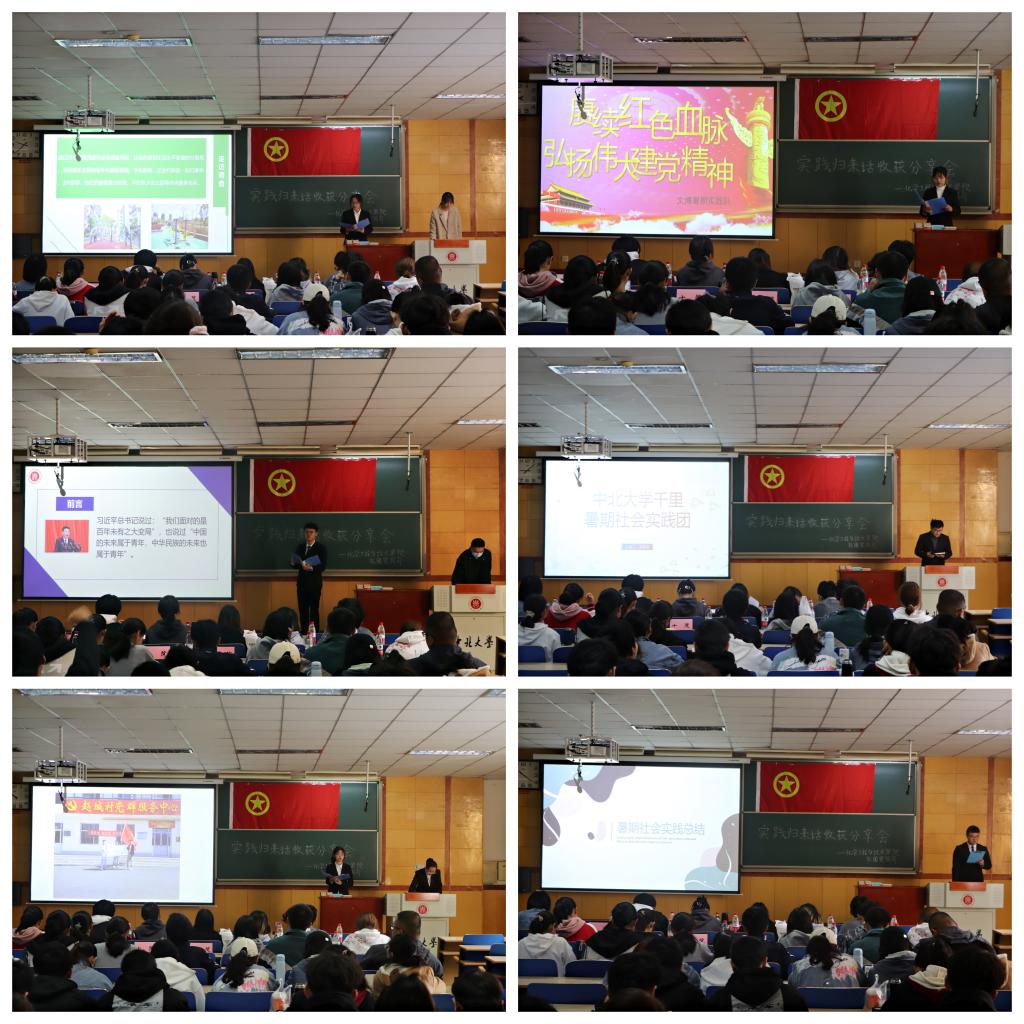 分享会上,文博实践队以"赓续红色血脉,弘扬建党精神″为主题,重温山西红色抗战历史,传承红色精神,探寻三晋大地的文化、地质、经济、艺术的发展起源,带我们领略了山西文化的特色。董晓琪同学分享了她在家乡参加银行服务工作的实践经历和对家乡茶园工作体系考察后的收获,让我们感受到国家强大以及社会主义制度优越性给我们带来的好处。邵思远同学讲述了他所在的团队深入农村调研,仔细考察当地的生态环境和经济状况,并利用所学专业知识进行社会实践和乡村服务,用实际行动展示青春力量。