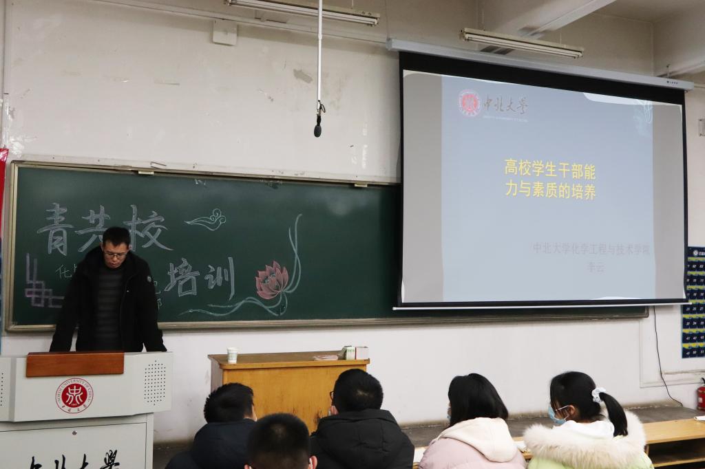 党委副书记李云就“高校学生干部能力与素质的培养”一题,向同学们介绍了学生组织的发展历史、学生干部的定位和原则要求。他强调,学生干部要落点在学生上,要认清自己的职责是为同学们服务。