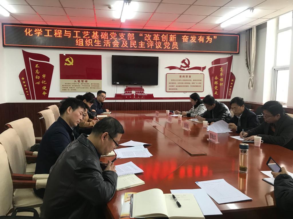 为深入学习贯彻党的十九大精神和习近平新时代中国特色社会主义思想,落实“改革创新 奋发有为”大讨论工作,进一步提高党支部战斗力,发挥作用。根据省委教育工委《关于召开2018年度基层党组织组织生活会和开展民主评议党员的通知》(晋教工委组〔2019〕7号)文件精神,2019年4月4日下午,化学工程与技术e世博