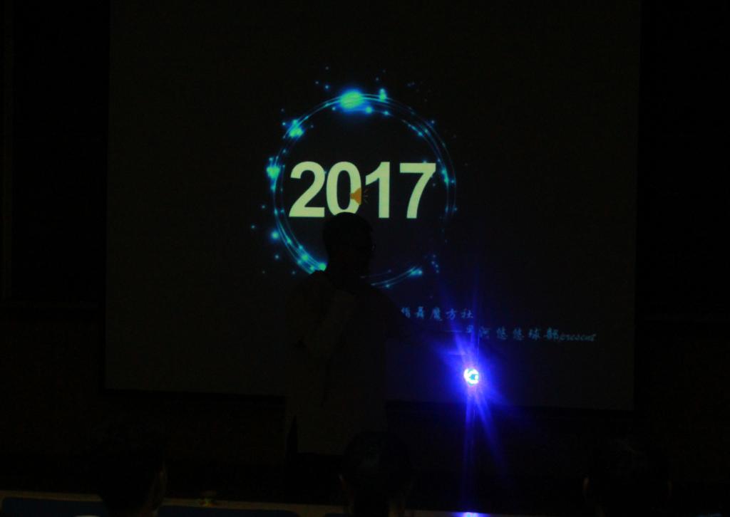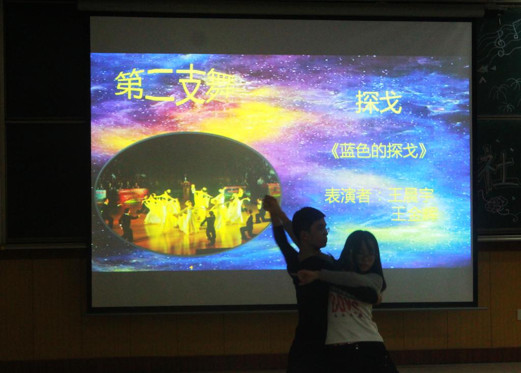 七点半,09302教室流光异彩,到处洋溢着欢声笑语。活动一切准备就绪,主持人宣布晚会正式开始。首先,晚会以《被风吹过的夏天》和《蓝色的探戈》一快一慢两支舞蹈震撼开场,那激情华丽的舞步,矫健动人的身姿,深深吸引了在场观众。随后的溜溜球表演更是精彩,蓝色的火球化作蓝色的精灵,在舞台上灵动的翻飞旋转,引得全场观众连连叫好。整场晚会,节目和游戏交叉进行,在抢凳子、快乐传真游戏环节中,同学们积极参与,气氛融洽。除此之外,笑艺相声社带来的《学聋哑》,六根弦吉他社带来的《斑马》动人弹唱,动漫社的精彩歌舞等一系列节目,让晚会在欢声笑语中完美落幕。活动接近尾声,工作人员与表演同学合影留念,留下一个美好的回忆。