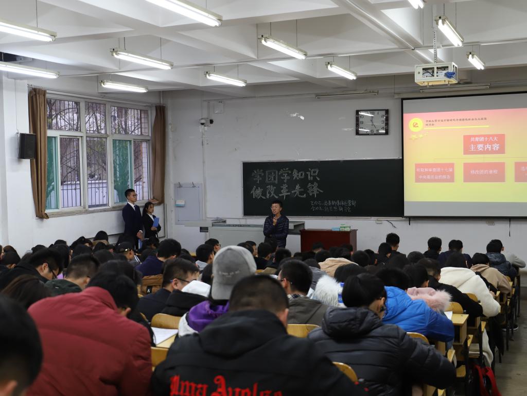 习近平新时代中国特色社会主义思想大学生研习会(以下简称研习会)共同举办的"学团学知识,做改革先锋"宣讲会于10101H准时开讲。
