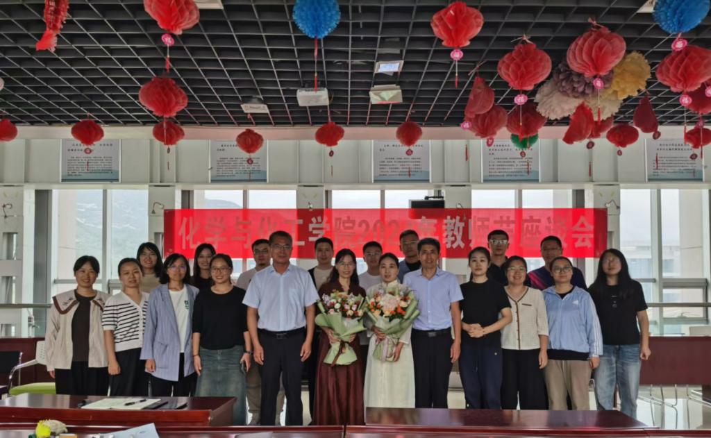 在科学楼C座七层连廊召开2024年教师节座谈会。本次座谈会邀请“美利信奖教金”获得者程原教授和王香梅教授参加,院党委书记吴志远、院长祁贵生及近五年新入职教师参加座谈会。会议由院长祁贵生主持。