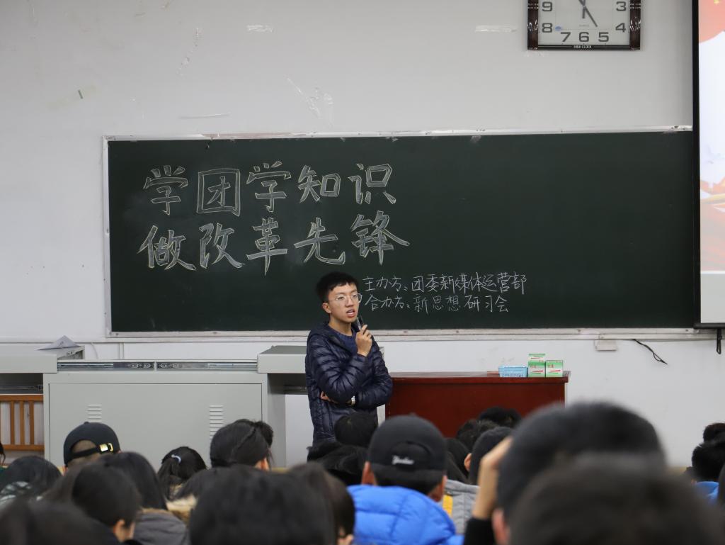 习近平新时代中国特色社会主义思想大学生研习会(以下简称研习会)共同举办的"学团学知识,做改革先锋"宣讲会于10101H准时开讲。