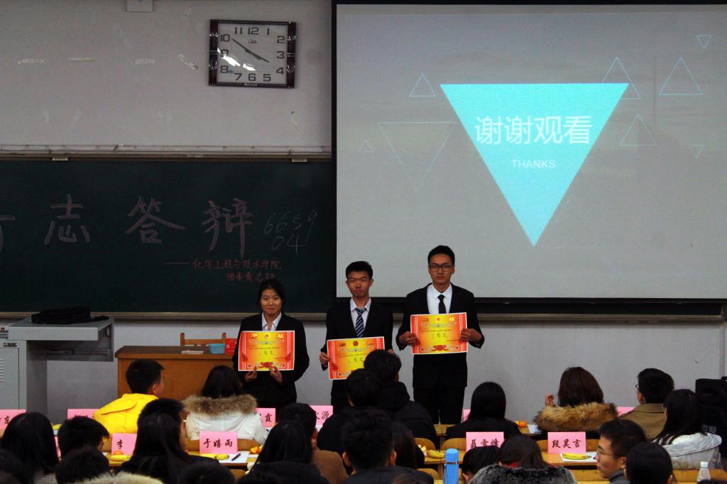 答辩按照抽签顺序进行。各青志队长以视频或ppt的形式对各青志支队前期进行的青志活动进行介绍、总结和反思。各位评委根据活动内容对各青志队长的表现作出了点评并提出了建议,重点强调了青志活动的安全问题以及活动内容的实在性。此次活动中,我们看到了来自不同支队的爱心与创意。“环抱优美城市,净享文明校园”,清洗共享自行车有他们的身影;“人生都有夕阳红,尊老爱幼树新风”,敬老院里有他们的身影;“低碳生活,让地球不再低叹”,居民小区有他们的身影……最后,化学工程与技术e世博