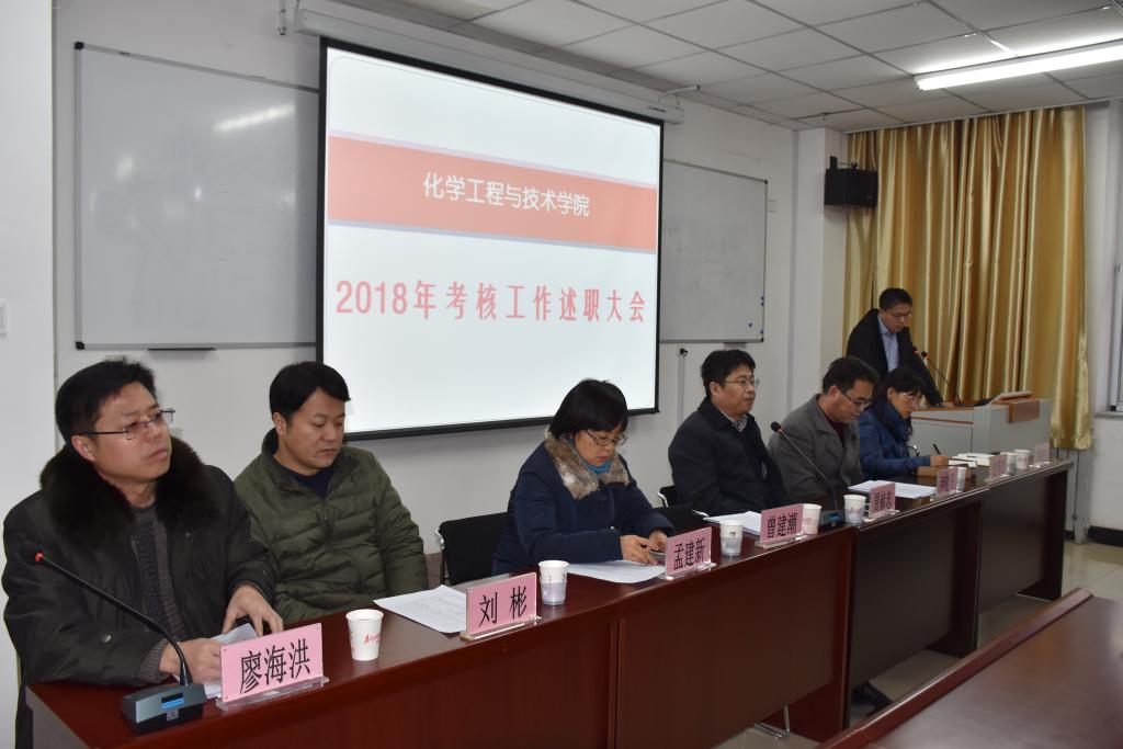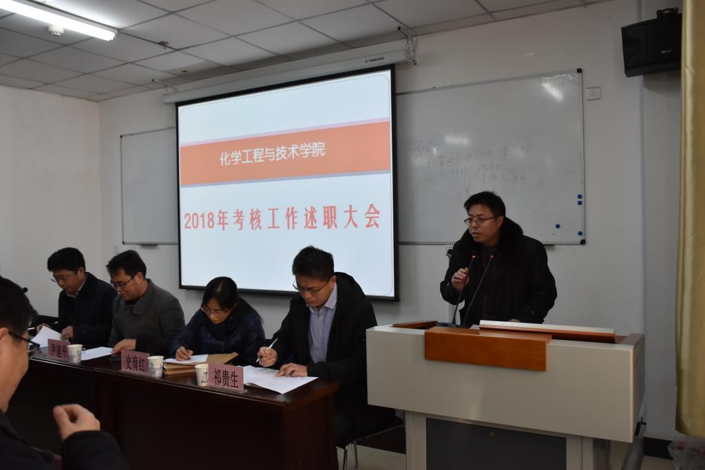 在科学楼206召开领导班子及领导干部个人述职述廉会议。由校党委组织部部长贾献忠、审计处处长孟建新、学生处处长尹建平、离退休人员管理处处长刘彬、纪委监察处副处长史育红等人组成的考核组参会,e世博