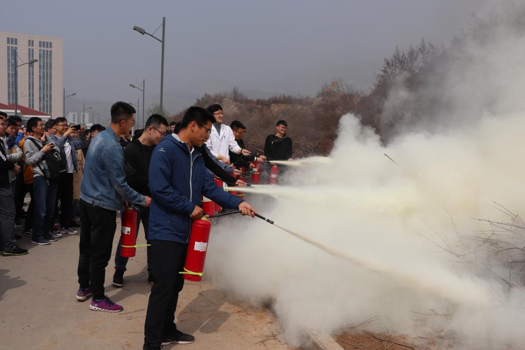 随后校保卫处史科长对如何报火警、火场自救及逃生方法等消防安全基本常识进行了讲解。为了让师生们更好地掌握灭火器的使用,现场还燃起了两堆大火,部分师生在史科长指导下亲自使用灭火器进行了扑救灭火。
