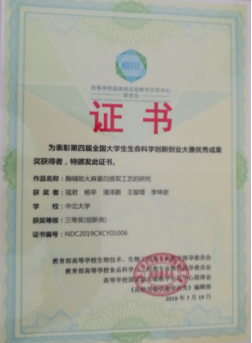经过e世博生物工程专业参赛人员及指导老师的不懈努力,在“第四届全国大学生生命科学创新创业大赛”中荣获佳绩,我校三个作品参赛,共荣获二等奖1项,三等奖2项。其中刘凯等六人凭作品“吸附树脂接枝刷对迷迭香酸的吸附性能研究”在比赛中荣获创新类二等奖(创新类),指导教师为史楠、郭建峰。李静等五人凭作品“一种用于沙棘黄酮检测的试剂盒及沙棘黄酮检测的方法”荣获创新类三等奖,指导教师为王海滨、王芳。寇君等五人凭作品“酶辅助火麻蛋白提取工艺的研究”荣获创新类三等奖,指导教师:李晓军。