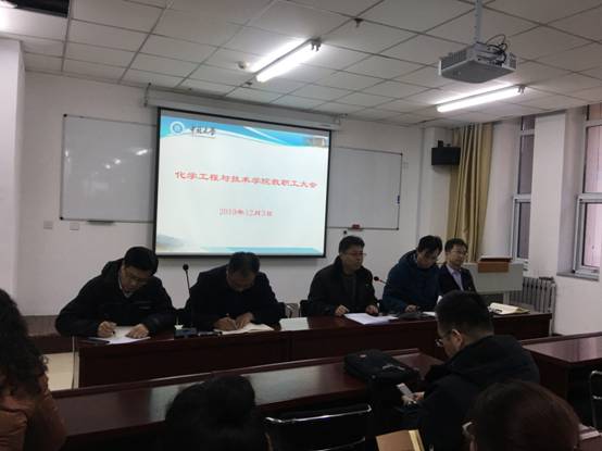 在科学楼C座东206会议室召开教职工大会,全体在校院领导参加本次会议,会议由院党委书记廖海洪主持。