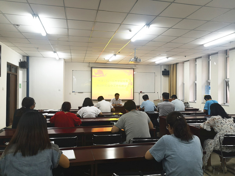 在科学楼206召开意识形态安全工作专题会议。会议由院党委书记廖海洪主持,全体院领导、院党委委员、各党支部书记、基层教学组织负责人、各科室负责人及教师代表参加了会议。