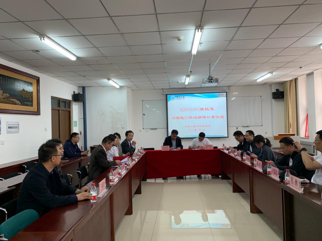 02043403班校友为母校80华诞捐赠防疫物资仪式在科学楼206举行。02043403班校友代表李小刚一行8人、院党委书记廖海洪、院长祁贵生、院党委副书记李云、副院长王海宾、副院长胡志勇参会。校友办综合办主任张琼、02043403班主任王金霞应邀参加。捐赠仪式由院党委书记主持,院长祁贵生代表e世博