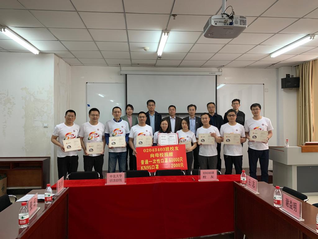 接受捐赠。此次02043403班校友共为母校捐赠一次性口罩60000只,KN95口罩2000只。