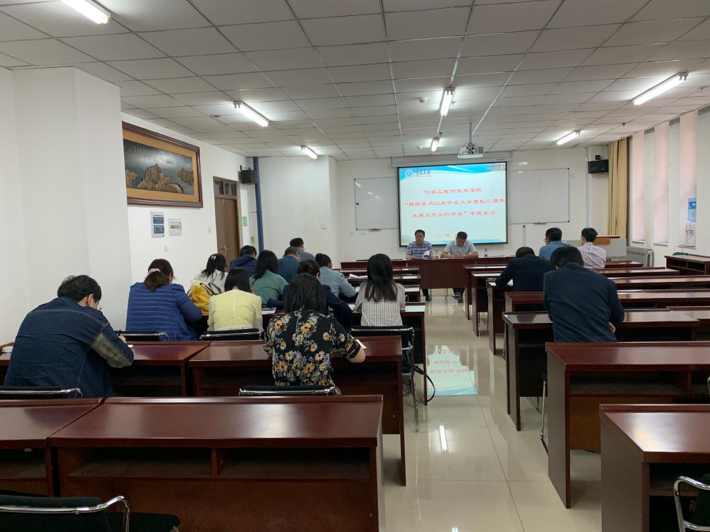 教学工作进行了详细布置,各基层教学组织要加强课程群建设,激活基层教学组织活力,提升教学研究能力;全面深入推进课程思政建设,完善课程教学体系,提升教师的育人意识;不断加强化学工程与工艺国家级一流专业、生物工程省级一流专业建设,提升人才培养水平。