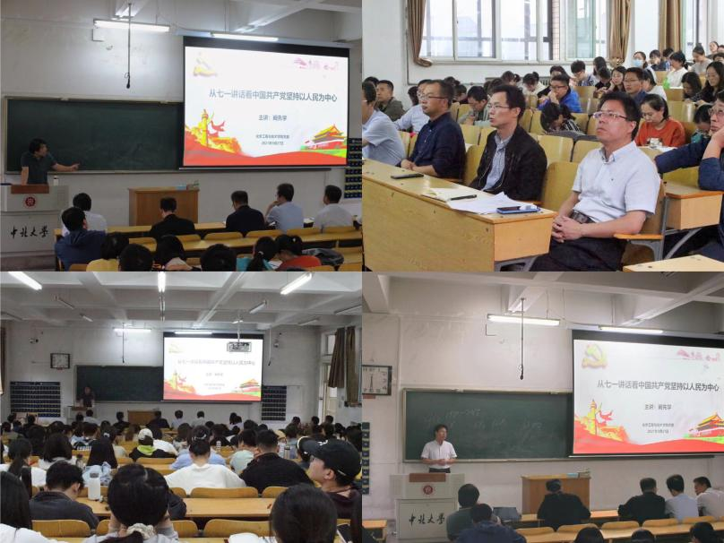 阚先学同志做题为“从七一讲话看中国共产党坚持以人民为中心”专题宣讲,本次宣讲活动由院党委书记廖海洪主持,全体师生党员参加了学习。