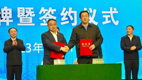 省市场监督管理局党组书记、局长鞠振,吕梁市人大常委会副主任、孝义市委书记刘世庆,吕梁市副市长任磊,副市长、市公安局局长郭红波,孝义市委副书记、市长郭清智出席活动。校党委书记沈兴全与鹏飞集团董事局主席兼总裁郑鹏共同为“先进炭基电极材料山西省重点实验室”揭牌,副校长刘俊与鹏飞集团总裁助理马小龙签订战略合作协议。