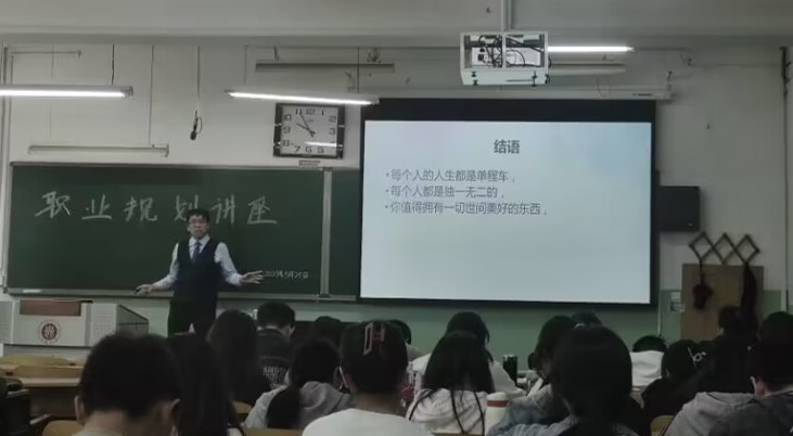 全体师生对优秀校友牛培旭的返校致以热烈欢迎。胡老师指出,职业生涯规划对大学生个人的未来职业走向和职业发展具有十分深远的影响,大学期间是职业生涯规划的黄金阶段,规划个人的职业生涯,可以使同学们明确职业目标和实施策略,避免学习的盲目性和被动性。