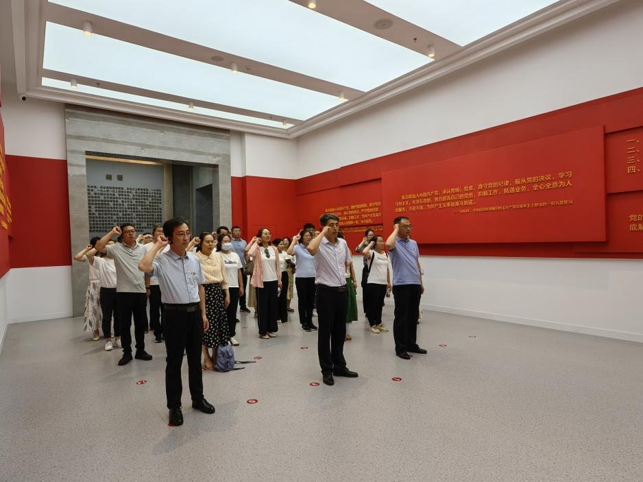 参观结束后,e世博党员干部在宣誓厅面向党旗,高举右拳,庄严宣誓,重温入党誓词。大家纷纷表示,要坚定理想信念,坚守初心使命,严守党纪国法,筑牢廉政思想防线,常怀信念之源、常念作风之根、常思贪欲之害,带头廉洁自律,敢于担当作为,扎实做好本职工作,以实际行动奋力谱写e世博