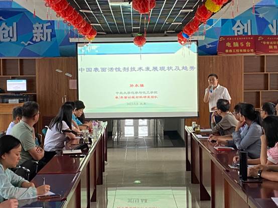 新引进的国家级人才孙永强教授级高工为青年教师做了题为《中国表面活性剂的发展现状及趋势》的报告,对我国目前表面活性剂及相关领域的科研进展、产业化问题、市场前景及趋势等进行了细致的讲解。与会教师就相关科研话题进行了热烈讨论。