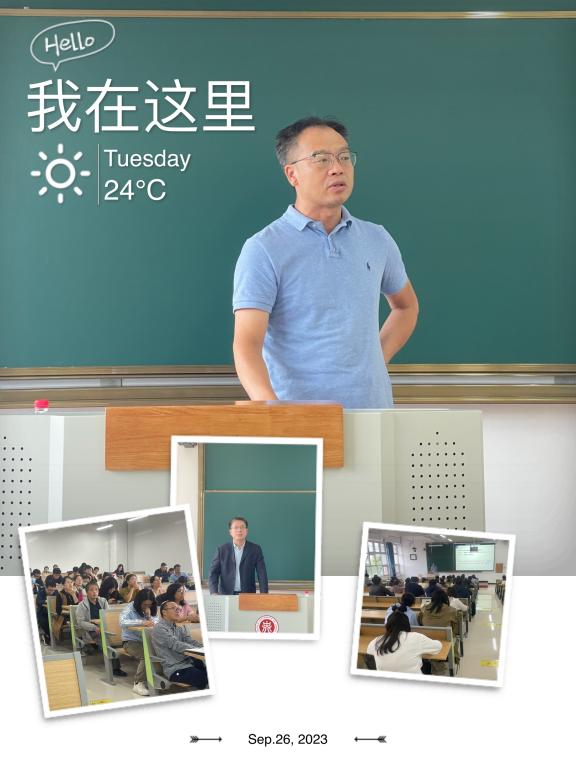 全体教师在17105H室参会,本次讲座由祁贵生院长主持。