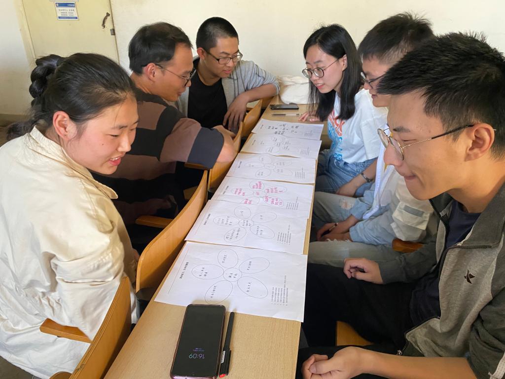 活动伊始,贾老师首先对研究生的研二规划进行了讲述,创造一个良好的氛围,让大家更好的参与活动。活动内容包括“滚雪球”、“ 我是谁”、“ 生命花瓣图”等。每位同学通过写下五个“我是谁”,并进行组内交流分享,让大家对自我进行深刻反思;“生命花瓣图”的活动,每位同学写下了生活中我最幸福的一件事、我目前最大的成就等六个花瓣,并进行组内分享,让每位同学对自己的过去、现在和未来进行了梳理,而且增进同学之间情谊,缓解了同学们沉重的科研压力;最后一个环节,组内每位成员都说出同组每一个成员的优点,在这个过程中,让学生知道别人眼中的自己,发掘自己未知的优点,更加认可自我。