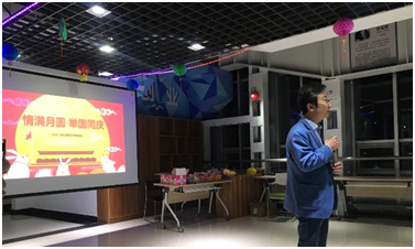 活动开始,科研院长胡志勇老师为大家讲话并送上节日祝福,并鼓励同学们在科研之余多参与集体活动。接着,马忠平老师发言,希望大家珍惜校园生活,珍惜亲情、友情、师生之情。之后,研分会为同学们分发月饼与贺卡,本次活动主要以趣味游戏为主,内容包括击鼓传物、加字游戏、不要说(做)挑战、你比划我猜、抢椅子共五个项目,同学们积极参与其中,活动最后在愉悦、祥和的氛围中圆满结束。
