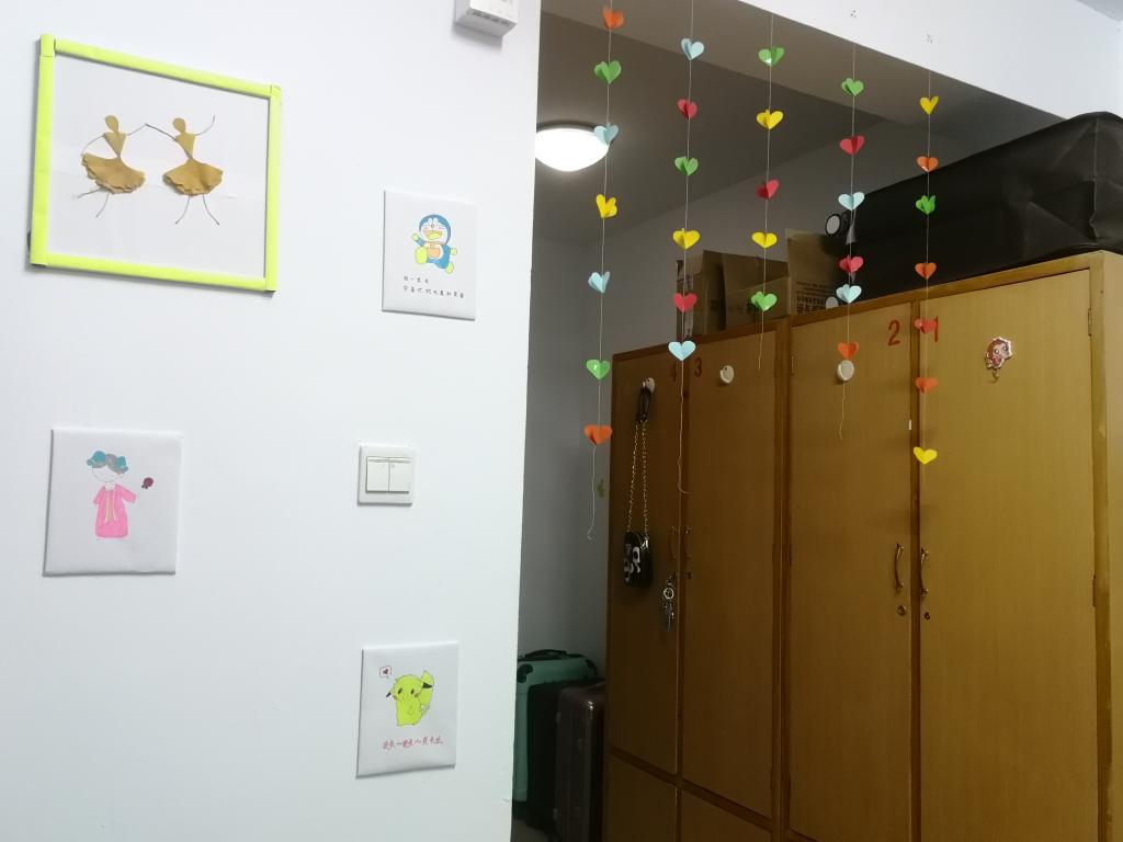 此次“宿舍文化大赛”活动经过前期报名,学生宿舍装扮,研分会检查、评分等几个环节,评选出几项优秀宿舍文化建设奖。每个参赛宿舍都展现给出了各自的宿舍文化,宿舍的每一处都被精心装扮、打扫。每个宿舍风格不一,命名和含义都别出心裁;有的简单大方,有的古风文雅,有的甜美温馨。此外同学们利用废旧纸箱和掉落的树叶、树枝制作装饰的工艺品,既体现了废物利用的环保意识,也让宿舍变得更加美丽。